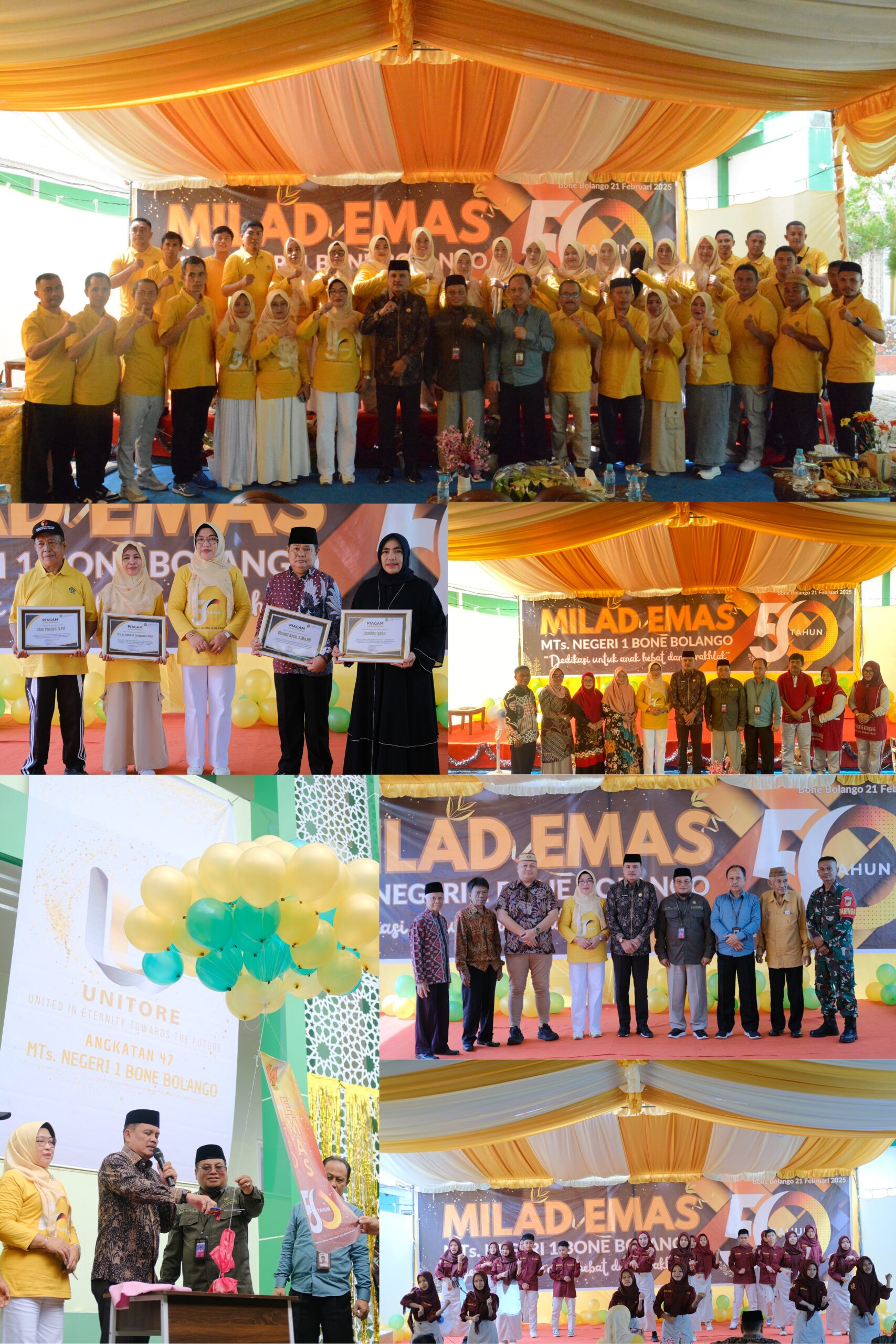 (Bone Bolango) Madrasah Tsanawiyah Negeri (MTsN) 1 Bone Bolango menggelar perayaan meriah dalam rangka memperingati hari jadinya yang ke-50, atau Milad Emas. Acara ini berlangsung pada Jum’at (21/02/2025) bertempat di halaman Madrasah.